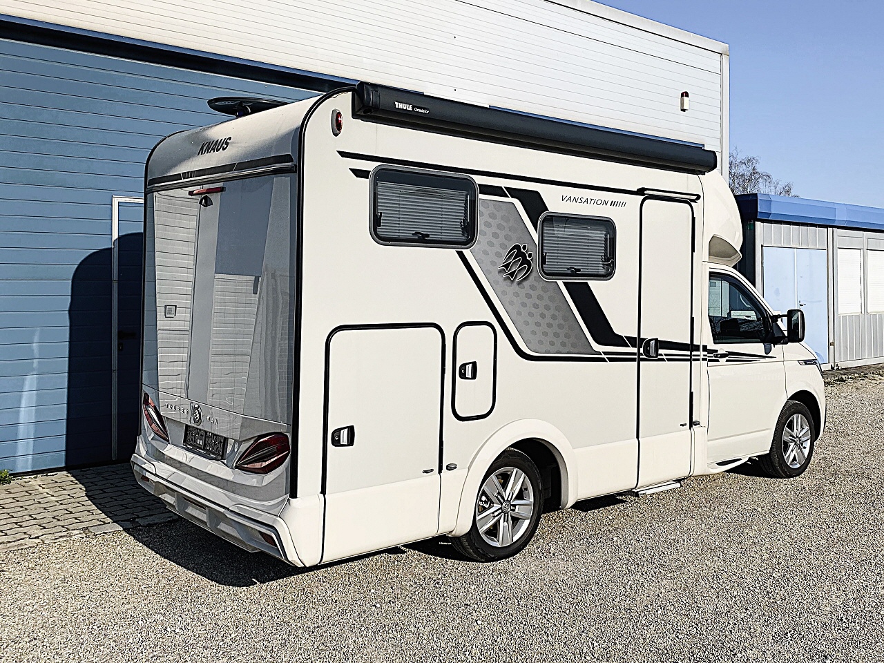 Ein besonderes Highlight auf dem Sektor der teilintegrierten Campervans ist dieser KNAUS TOURER VAN 500 MQ VANSATION - Der VW T6.1 ist ein hervorragendes Basisfahrzeug das in dieser Fahrzeugklasse sehr selten zu finden ist. Wir bauen unsere KUWOVANS vornehmlich auf diesem Fahrzeugtyp auf und wissen all die Vorzüge zu schätzen. Daher haben wir uns entschlossen auch mal ein größeres Fahrzeug auf dieser Basis anzubieten. Und wir sind begeistert von diesem Konzept - Fahrverhalten, Platzangebot, Stauräume, Atmosphäre im Wohnraum - überzeuge Dich selbst und vereinbare einen Besichtigungstermin, wir freuen uns auf Deinen Besuch!